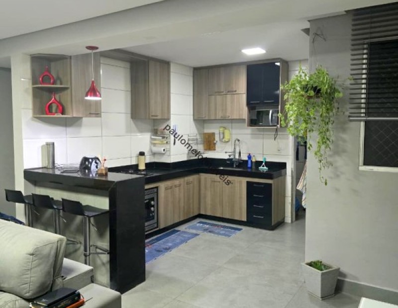 • Sala e cozinha conjugadas, divididas por uma bancada tipo barzinho, criando um ambiente integrado e acolhedor